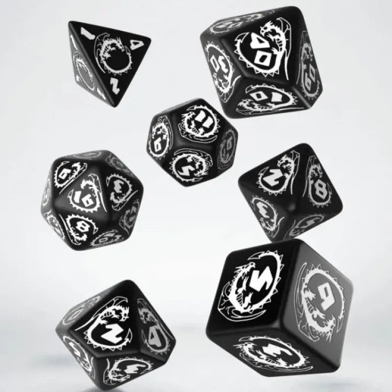 Dice>Q-Workshop Dragons Dice Set Black with White Etches (7 Piece Set) – Your Source for Gaming Essentials
