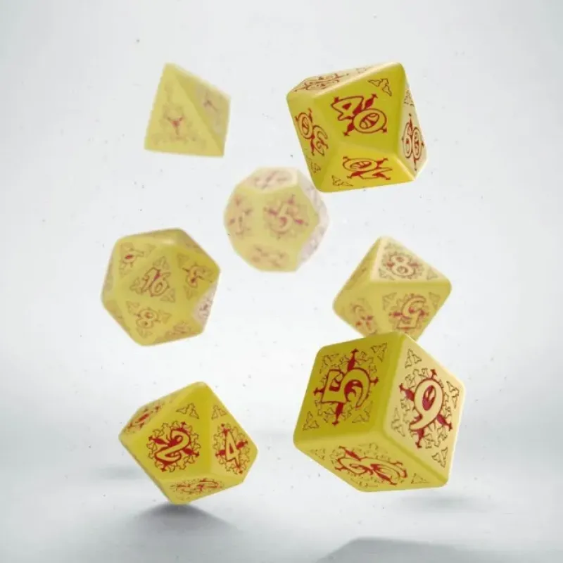 Q-workshop and Paizo Publishing are proud to bring you the 100%-official Pathfinder Adventure Path: Legacy of Fire dice. These masterfully crafted dice feature red engravings on yellow polyhedrons.