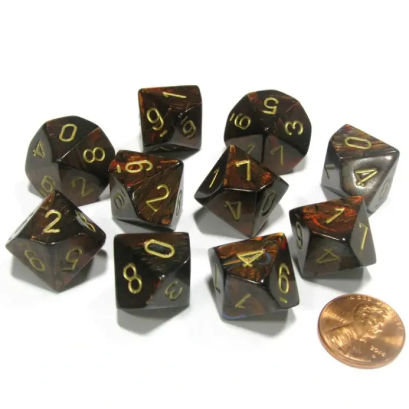 Dice>Set of 10 Chessex Scarab D10 Dice - Blue Blood with Gold Numbers - Your Source for Gaming Essentials