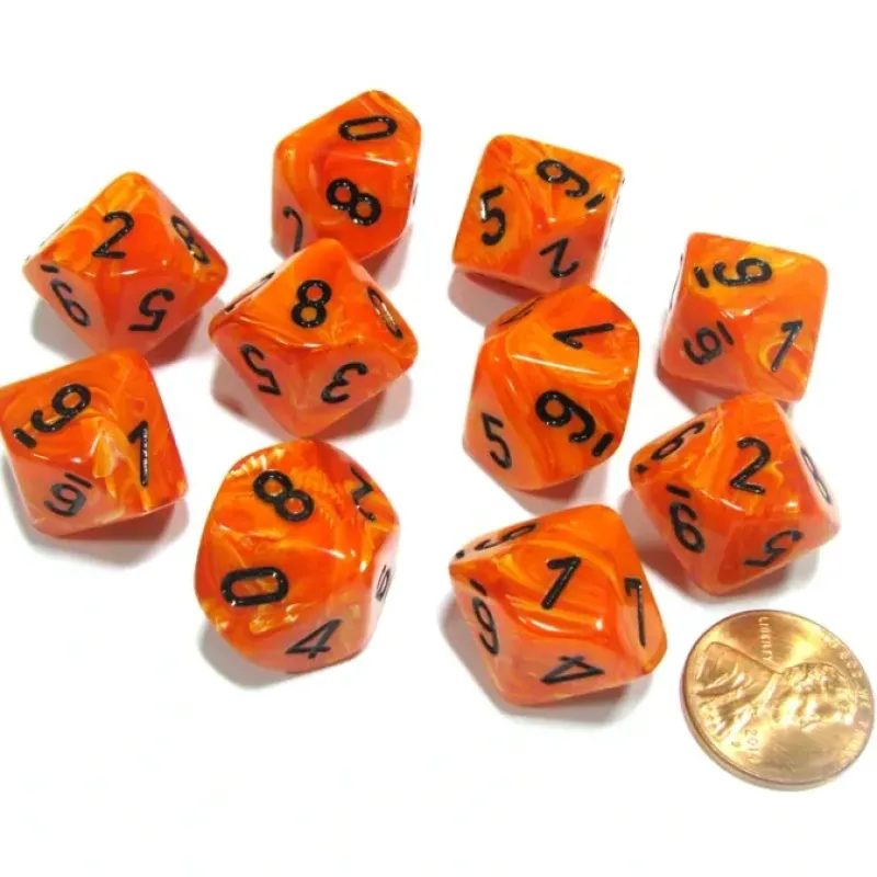 Dice>Set of 10 Chessex Vortex D10 Dice – Orange with Black Numbers – Your Source for Gaming Essentials