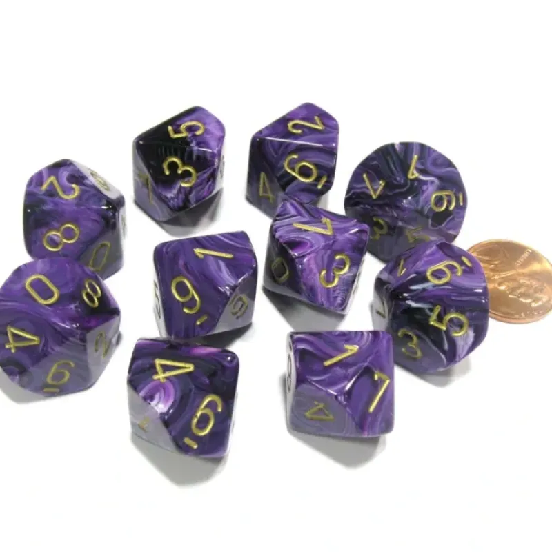 Dice>Set of 10 Chessex Vortex D10 Dice - Purple with Gold Numbers - Your Source for Gaming Essentials