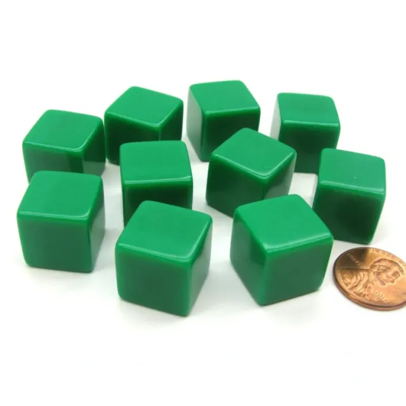 Create your own dice with these 6-sided green 16mm tall blank dice. Use stickers (not included), write directly on the dice, or use whatever your imagination can come up with and write numbers, letters, points, characters, words, or whatever you like on the stickers – the options are unlimited! The 10 dice come enclosed in a plastic bag. Great for educational games, dice games, board games, RPG games, and friends and family fun!