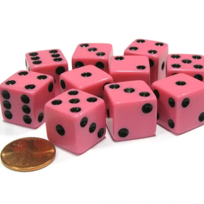 Dice>Set of 10 Six Sided Square Opaque 16mm D6 Dice - Pink with Black Pip Die - Your Source for Gaming Essentials