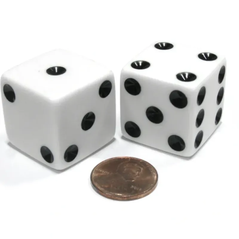 These six sided 25mm opaque dice are numbered one to six with traditional dice pips, spots, in the surface of the dice and painted black. These larger than standard dice are fun, functional, and easy to spot! Quality made, built to last. Warning: Choking Hazard – Small parts. Not recommended for children under 3 years.