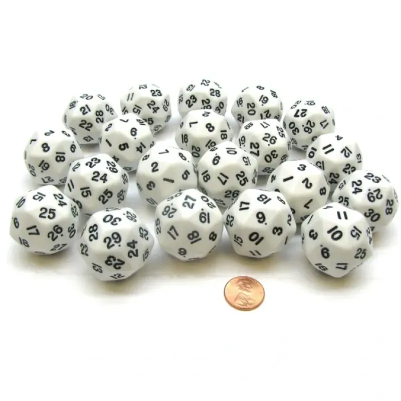 Dice>Set of 20 Triantakohedron D30 30 Sided 33mm Jumbo Dice - White w Black Numbers - Your Source for Gaming Essentials