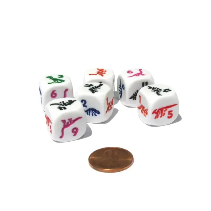 Use these dinosaur dice to play your favorite dice and board games or create your own unique game. 6 dice enclosed in a convenient small plastic resealable bag are included with this purchase.