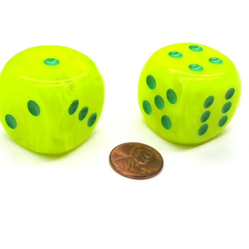 Dice>Vortex 30mm Large D6 Chessex Dice, 2 Pieces – Electric Yellow with Green Pips – Your Source for Gaming Essentials