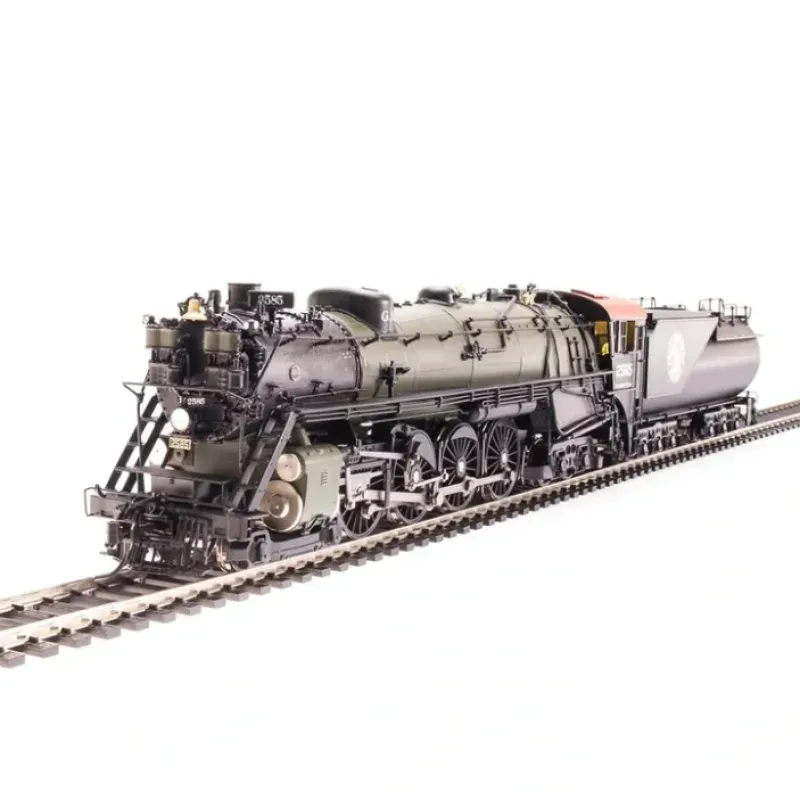 This is a Broadway Limited 2877 HO Scale Painted, Class S-2 4-8-4 Vestibule Cab with Sound, DCC & Smoke – Brass Hybrid Paragon3(T (Glacier Green, black, red).Features: New Paragon3 Sound & Operation System Featuring Rolling Thunder with Authentic Sounds and Prototypical Operation in both DC and DCC environments, Factory InstAlled Engineer / Fireman Figures, Synchronized Puffing Smoke with each Chuff, Variable Puffing Smoke Intensity and Timing, Locomotive Composition: Brass body with Die Cast Chassis, Tender Composition: Brass body with Die Cast Chassis, Couplers: (2) Operating Kadee or Compatible, Compatible Tracks: Code 70, 83, 100 Rail, Equipped with Traction Tires Minimum Operating Radius: 22 in or greater.