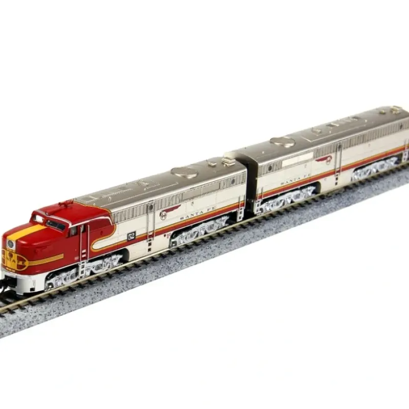 This is a Broadway Limited 3201 N Scale Santa Fe Alco PA1 Powered A-Unpowered B Set with Sound& DCC – Paragon2 #52L, 52A (Warbonnet, silver, red). Locomotive Features: All-New Paragon2 Sound & Control System, Integral DCC Decoder with Back EMF for Industry Best Slow Speed Operation in DC and DCC, Precision Drive Mechanism engineered for continuous heavy load towing and smooth slow speed operation, Motor Type: 5-Pole Can with Skewed Armature & Dual Fly Wheels, Premium Caliber Painting with Authentic Paint Schemes,Prototypical Light Operation with Golden White LED Headlight, Beautifully Detailed, Accurately Modeled Locomotive, Separately Applied Details such as grab irons, steps, and ladders, Operating Sprung Diaphragms, Constant Intensity Directional Lighting, Traction Tire-Equipped for Maximum Traction, Locomotive Composition: ABS with Die Cast Chassis, A-Unit Length: 5.1,B-Unit Length: 4.9,A-Unit Weight (Powered): 4 oz,Couplers: (2) Micro Trains #1015,Recommended Minimum Radius: 9.75. Industry-Leading Sound Features: Operates in DC & DCC (use DCMaster for DC Sound),Record & Play Operation – Records and plays back Sounds and movements once or repeatedly for automatic operation,16-bit Sample Rate for exceptional high frequency Sound clarity,Playback Whistle for multiple whistle lengths and patterns, Choice of 3 selectable Whistles / Horns,Alternate Whistle / Horn where applicable for locomotive with air horn and steam whistle – both the main whistle and alternate can be easily played, Adjustable bell ringing interval for faster or slower bell, Numerous user-mappable functions with available keys, Johnson Bar Sound at Direction Change (Steam Only), Passenger Station Ambient Sounds – Controlled with Function Key, Freight Yard Ambient Sounds – Controlled with Function Key, Lumber Yard Ambient Sounds – Controlled with Function Key, Farm Ambient Sounds – Controlled with Function Key, Crew Radio Communications – Controlled with Function Key, Maintenance Yard Ambient Sounds – Controlled with Function Key, Demo Mode for display and demonstrations, Grade Crossing Automatic Signal, 8 Diesel Motor Revs (Diesel Only), Simple Programming with Integral DCC Decoder, Automatic Forward / Reverse Signal – When activated, stopping triggers and stop whistle toot. When moving forward from a stopped position, toots twice. When moving in reverse. toots three times, Engine Sound intensity varies with load, IndividuAlly adjustable Sound volumes for each effect, EZ Reset Button for quick return to factory default settings. Please see my pictures for additional features.