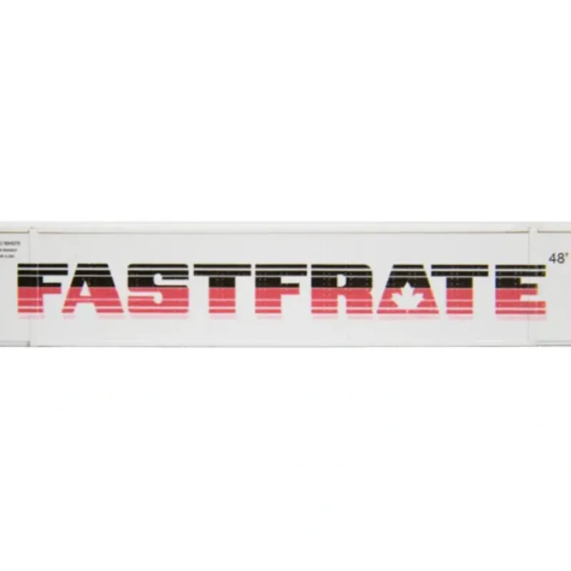 This is a Con-Cor 223-448024 N Scale 48′ Container 2-Pack – Ready to Run Canadian Pacific (white, black, red, FastFrate Scheme)
