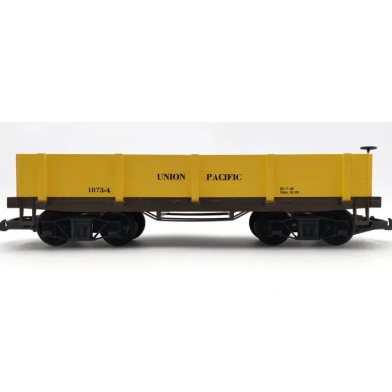 Here is a Kalamazoo 1873-4 G Scale Union Pacific High Side Gondola. This car features plastic trucks, plastic latch couplers, metal wheels and axles.