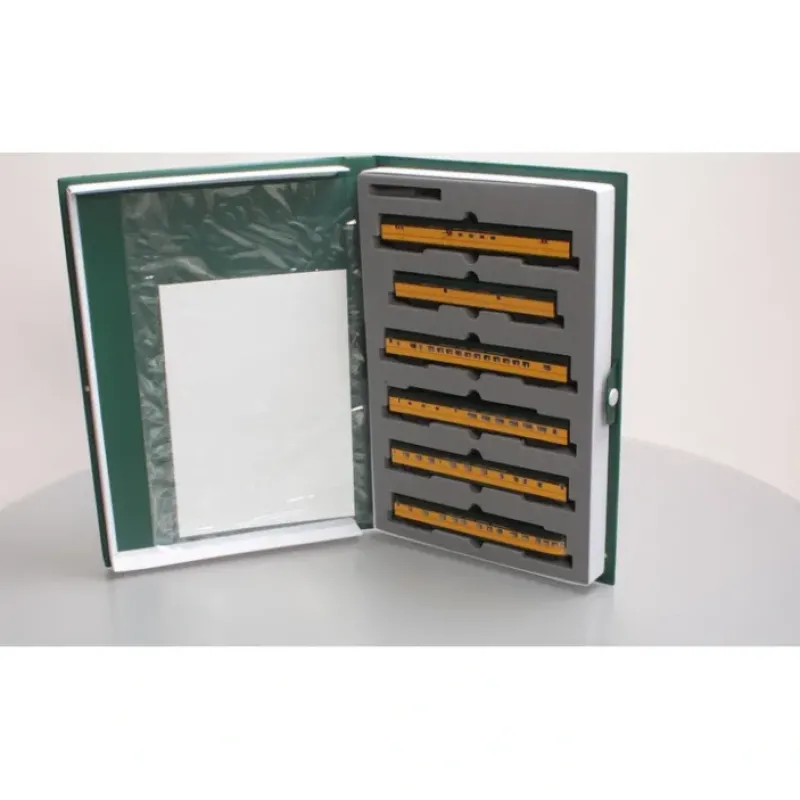 Here is a Kato 106-093 Chicago & Northwestern Smoothside Passenger Car Set. Features include plastic construction, knuckle coupler, plastic trucks, and metal wheels.
