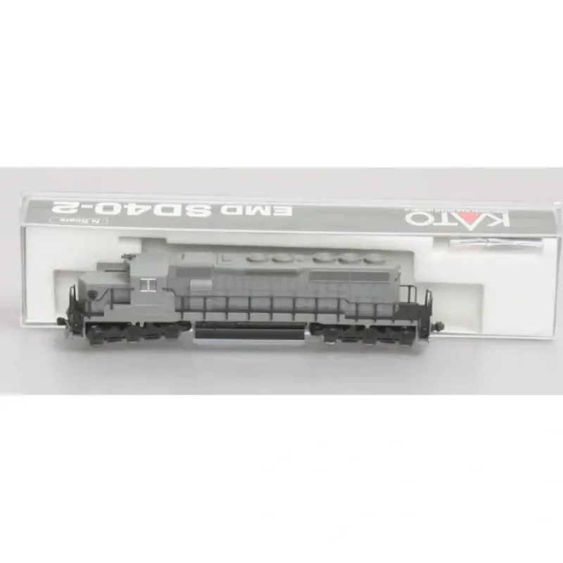 Here is a Kato 176-4900 N Scale Undecorated SD40-2 “Snoot Nose” Diesel Locomotive. Features: plastic construction, metal wheels, knuckle couplers, and a powerful motor.