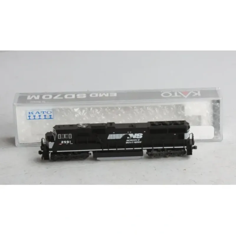 Introduced in 1992, EMD SD70M was a 4000 horsepower locomotive that ran on EMD’s new steerable truck design, known as the HTCR-II radial truck. This new truck allowed the locomotive to transfer its power to the rails more efficiently, which in turn enabled two SD70M locomotives to pull a train that would have taken 3 SD40-2’s to pull. The DC brother of the SD70MAC, the SD70M was primarily put to work hauling coal trains due to its high pulling capacity. These models will be equipped with all-wheel electrical pick-up and blackened metal wheels in trucks that replicate the HTCR Phase II trucks. The NS and UP versions will feature a Phase II Wide Cab and Flared Radiators. This locomotive features: Powerful five-pole KATO motor with dual brass flywheels, Floating-axle shock-absorber design to maximize tracking and performance, Directional Headlight and illuminated, preprinted numberboards, Kato magnetic knuckle coupler, DCC Friendly mechanism ready for drop-in decoder installation, and Drop in DCC compatible with the Digitrax DN163K1C, Digitrax DN163K1D or Train Control Systems K1D4-NC.