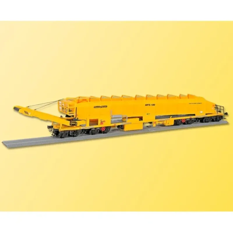 This is a Kibri 26150 HO Scale Plasser & Theurer MFS-100 Ballast Carrier/Conveyor – Ready to Run Yellow.