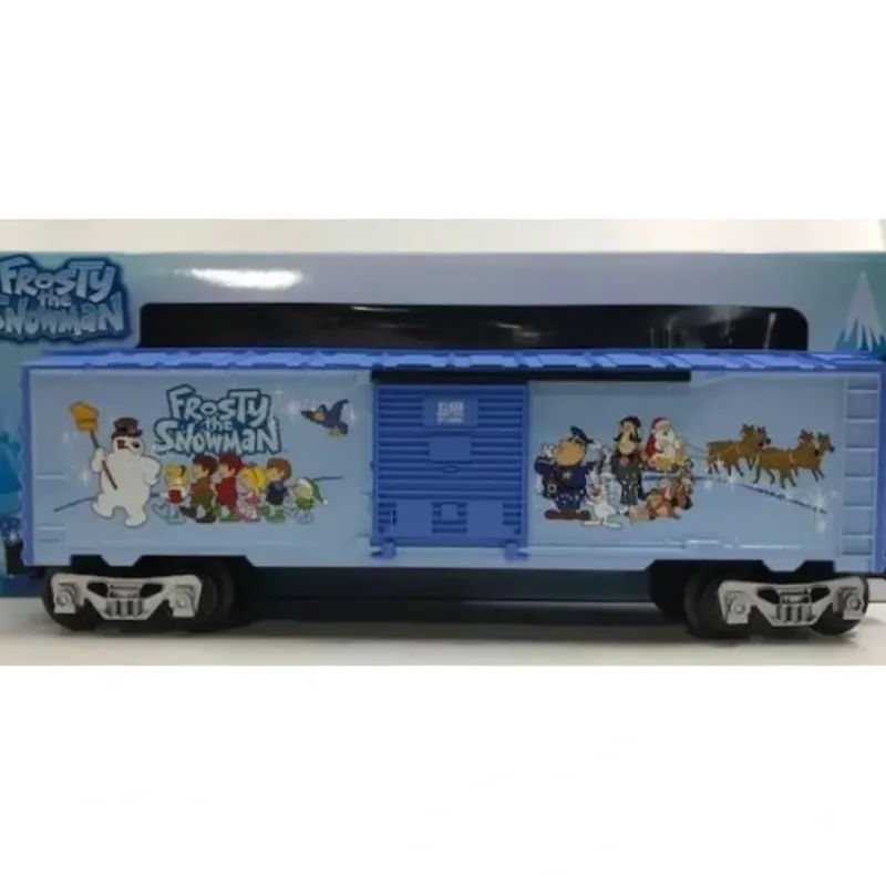 Here is a Lionel 6-81428 O Gauge Frosty the Snowman Boxcar. This car features a plastic construction, die-cast metal sprung trucks, sliding doors, and operating knuckle couplers. For over 60 years, Frosty the Snowman has enchanted the hearts of young children and solidified its his place as a lyrical favorite for the holiday season. Warner Bros. Entertainment Inc. & Classic Media, LLC. Based on the musical composition FROSTY THE SNOWMAN