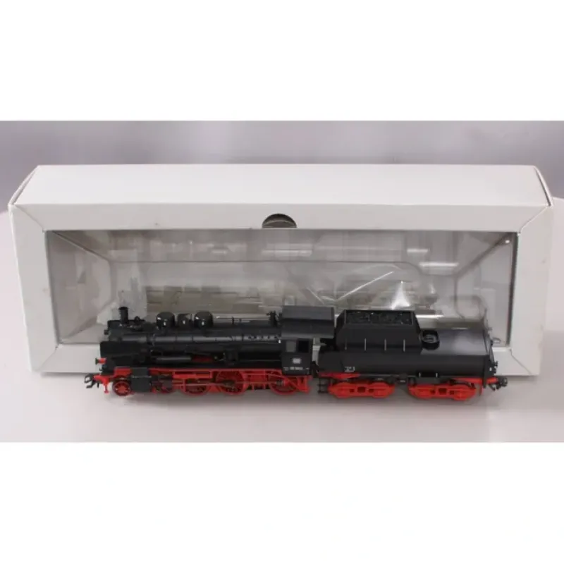 This is a Marklin, Inc 37035 HO Scale Class 38.10-40 4-6-0 with Tub-Style Tender – 3-Rail with Sound & Digital – Exclusiv German Federal Railroad DB (Era III, black, red). The locomotive has an mfx digital decoder, controlled high-efficiency propulsion, and extensive sound functions. 3 axles powered. Traction tires. A 72270 smoke unit can be installed in this locomotive. The headlights are maintenance-free, warm white LEDs. The headlights and the smoke unit contact will work in conventional operation and can be controlled digitally. There is a close coupling between the locomotive and tender. The locomotive has a detailed engineer’s cab. Brake hoses, prototype couplers, and protective sleeves for the piston rods and included and can be installed on the locomotive. Length over the buffers 21.0 cm / 8-1/4.Highlights: Version with a prototypical tub-style tender. Controlled high-efficiency propulsion and extensive sound functions.