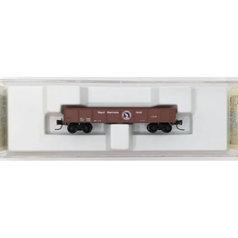 Here is a Micro-Trains 14306 Z Scale Great Northern Gondola #75425. This car features plastic construction, plastic trucks, micro-trains couplers, plastic wheels and axles.