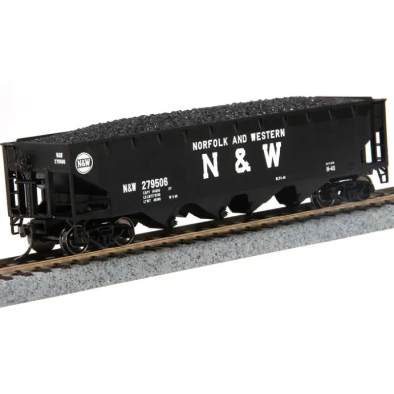 This is MTH 85-75040 HO 70t Quad Hopper N&W #279504. 70-ton quadruple hopper car, Norfolk & Western. Ready 2 Rail provides the superior quality and detailing you’ve come to expect from M.T.H. coupled with a competitive price point for the entry-level HO hobbyist. These cars offer the same construction and body detailing as their more expensive counterparts, but designed for the budget-minded model railroader. It’s the perfect way to add to a Ready-To-Run set or to introduce someone new to the hobby.