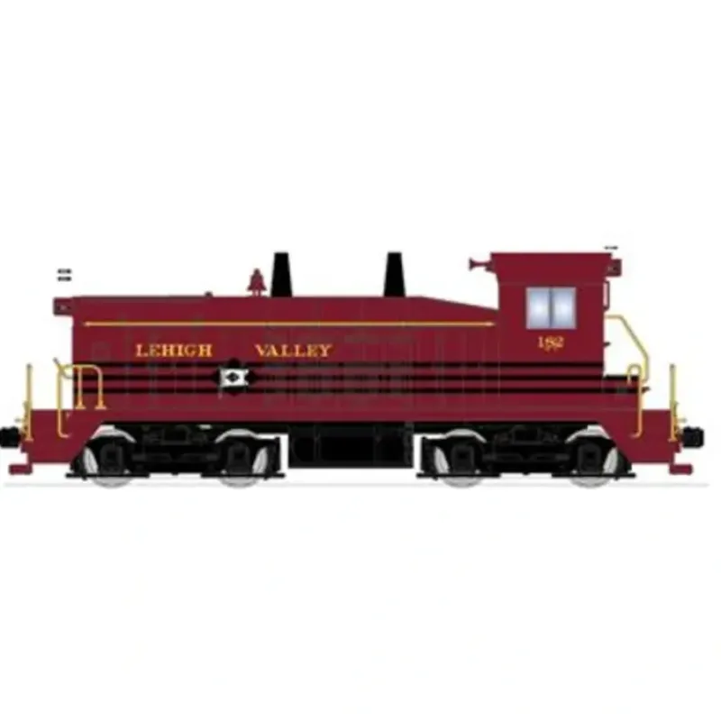 This is a Broadway Limited 2952 HO Scale Lehigh VAlley EMD NW2 with Sound& DCC – Paragon2 #182 (red, gold, white Flag Logo).Industry-Leading Features: All New Paragon2 Sound and control system ,Integral DC/DCC dual mode decoder for ease of operation ,Industry best slow-speed operation in DC and DCC ,Prototypical light operation with headlight, cab light, and rear light ,Authentic EMD NW2 switcher Sounds! Controllable in DC and DCC. ,All-wheel drive and All-wheel electrical pick-up ,Operating knuckle couplers ,Factory instAlled engineer figure ,Near brass-caliber detail at a plastic price. Product Information: ABS plastic body with heavy die cast chassis for maximum tractive effort ,Precision gearing optimized for switching ,5-pole can motor with skew wound armature and dual fly wheels ,Locomotive Length (coupler to coupler): 6.25 inches ,Locomotive Weight: 9.2 oz ,Separately Applied Handrails, Ladders, Whistle, and Brass Bell ,Will Operate on Code 70, 83, and 100 rail ,Recommended Minimum Radius: 18 inches.