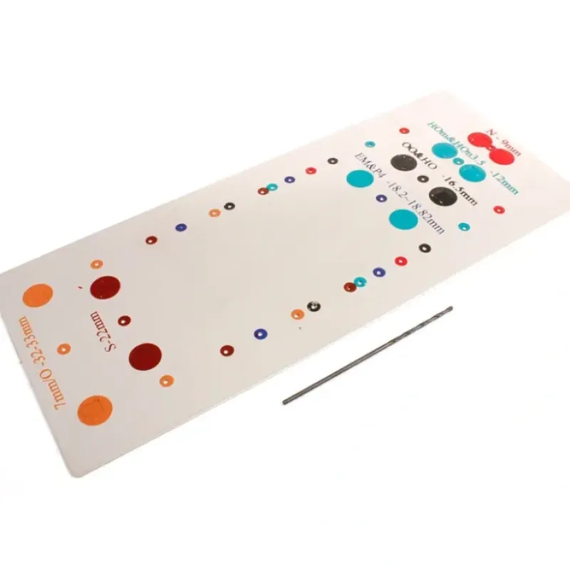 This is DCC Concepts TMB Template Pack W/Pilot Drill. Cobalt Turnout Motor Installation Template. This template is supplied complete with pilot drill, and will make accurate installation much easier in all scales from N to Gauge 1. (Usable with all Cobalt motor variants.)