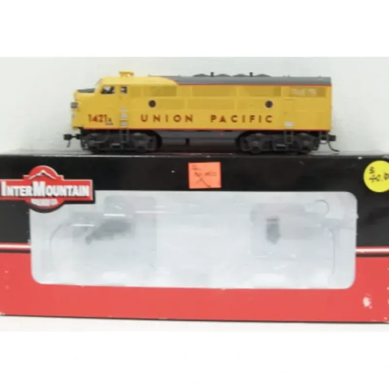 Here is an InterMountain 49103EMD F-3A Union Pacific Locomotive. This locomotive features a plastic shell with a motor, operating headlamp, plastic trucks, operating knuckle couplers, metal wheels and axles.