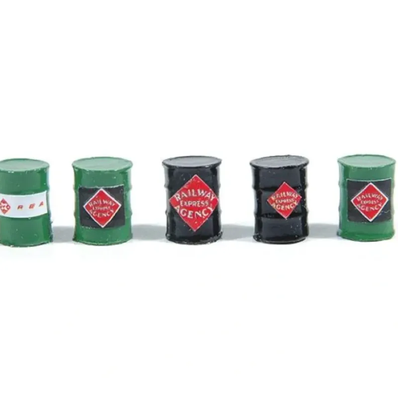 This is a JL Innovative Design 361-722 HO Scale Custom Oil Barrels Railway Express Agency pkg(5)