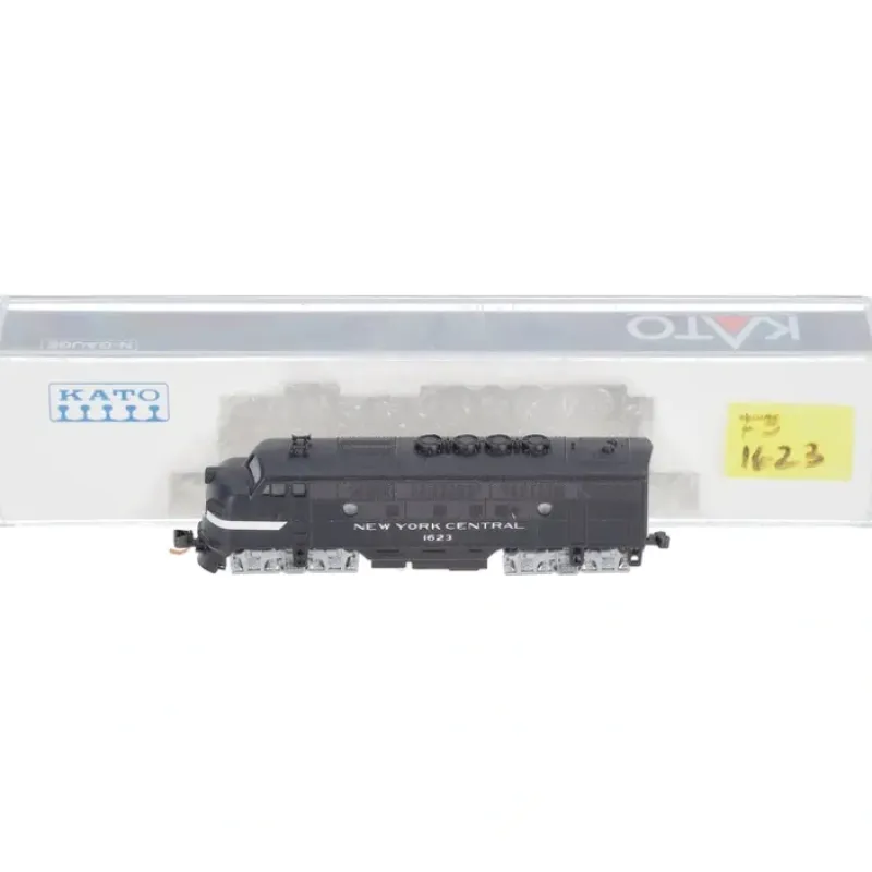 Here is a Kato 176-075 N Scale New York Central F-3 A Unit Diesel. Features include a powerful motor, plastic construction, plastic trucks, plastic knuckle couplers, and metal wheels and axles.
