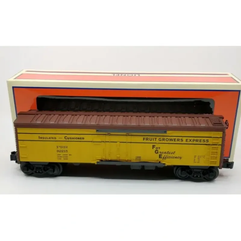 Here is a Lionel 6-15888 O Gauge Fruit Growers Express Reefer #92215. This car features die-cast metal sprung trucks, operating knuckle couplers, metal wheels and axles.