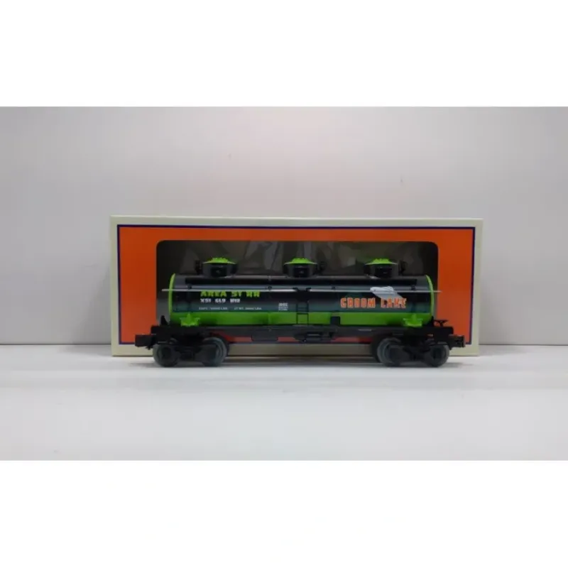 Here is an Lionel 6-26492 O Area 51 3-Dome Tank Car. This car features plastic trucks, operating knuckle couplers, metal wheels and axles.