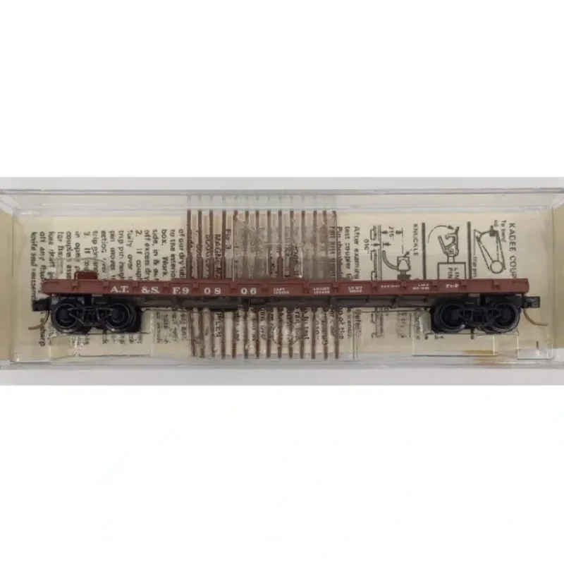 This is a Micro-Trains 44060 N Scale ATSF 50′ Straight Side Flatcar #0806.
