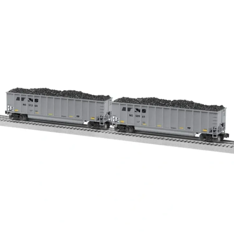 Here is a Lionel 2043280 O Norfolk Southern Rotary Gondola 51204, 50961 (Set of 2). It features: Die cast trucks and couplers, Rotating coupler on one or both ends per prototype car, Removable plastic coal load, 10 road numbers available per paint scheme for long unit trains.