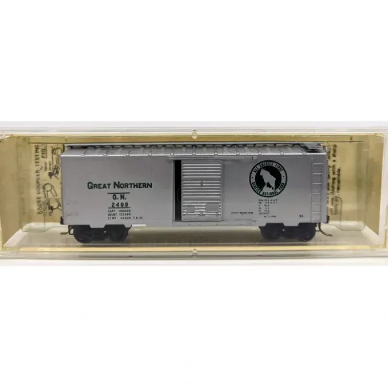 This is a Micro-Trains 20100 N Scale Great Northern 40′ Standard Single Door Boxcar #2499. It features plastic construction, plastic wheels, metal axles & has hornhook couplers.