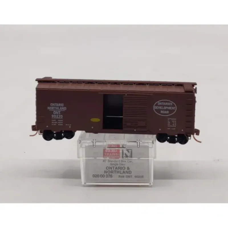 Here is a MicroTrains 20376 N Scale Ontario Northland 40′ Standard Boxcar #90235. This car features plastic construction, plastic couplers and plastic wheels.
