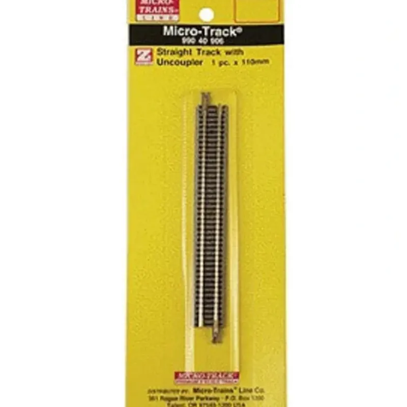 This is a Micro Trains Line 489-99040906 Z Scale Micro-Track Code 55 Nickel Silver Rails w/Dual Joining System (DJS)(TM) 110mm Straight Track w/Uncoupler