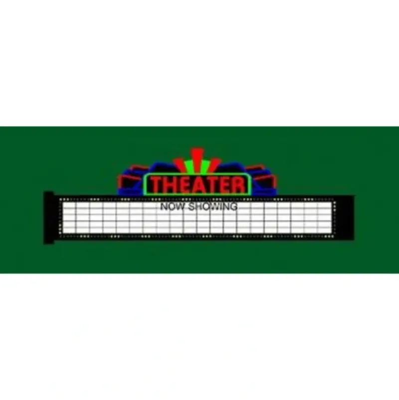 Dimensions: 5.60 long x 1.8 high. With the word Theater removed the marquee height is .875. Recommended scales N/HO. Working Neon Signs for Your Layout. Animated simulated-neon signs are perfect for adding flashing and moving lights to your layout. They’re easy to install on buildings or as freestanding billboards. The Drive-In Theater sign is two-sided and features chase light arrows to guide people in. It includes Now Showing lettering, several movie titles on a blank field, and peel-and-stick overlays for more variations. The Theater Marquee features chase lights around a white field and colorful theater graphics. It includes peel-and-stick lettering with several movie titles. The sign is ideal for mounting on your favorite theater building and is available in two sizes.