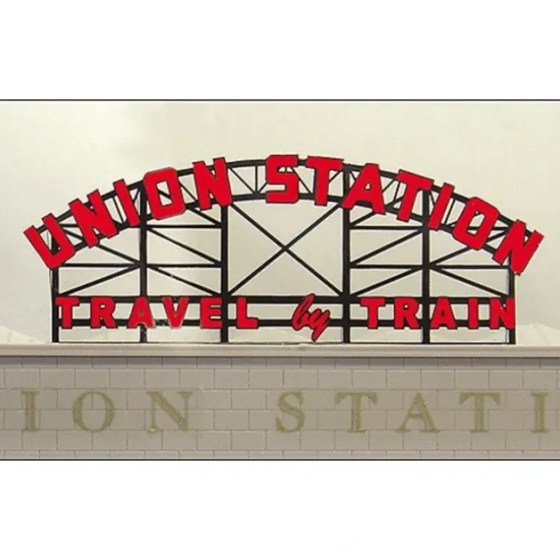 This is a Miller Engineering 3881 HO/O Scales Union Station Animated Neon Billboard 2-1/16 x 5-1/8 5.2 x 13cm. Denver’s historic Union Station train station llocated at 1701 Wynkoop Street. The station first opened in 1881 and the iconic UNION STATION Travel by Train sign was added in 1952. Comes complete with stainless steel photo etched supports for added realism. Available in two sizes.This is a limited production sign.