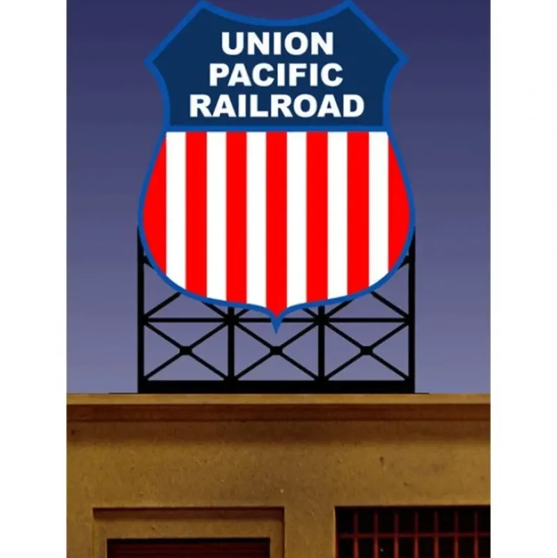 This is a Miller Engineering 881801 HO/O Scales Union Pacific Animated Roadside Billboard – Light Works USA 5 x 6 12.7 x 15.2cm. This is the Large Version and comes with Supports. Limited Edition Sign!Kit Includes: One EL sign lamp. One ready to run power supply with 46 pre-programmed chase patterns. Runs on 3 AAA batteries (Not Included) or optional power supply, sold separately.