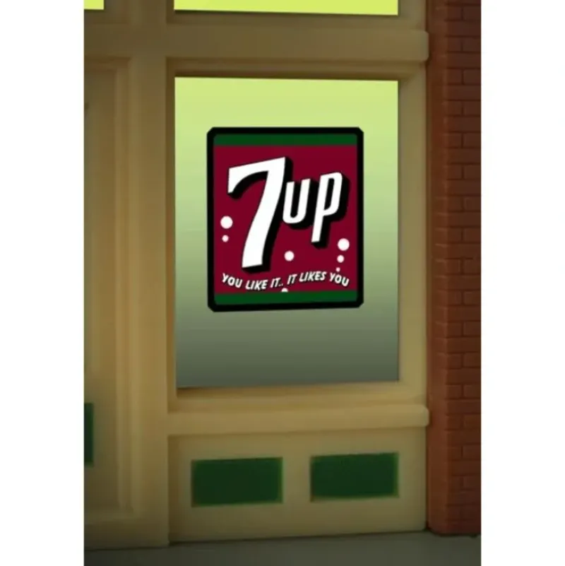 This is a Micro Structures 8945 HO/O Window Sign 7up. Animated Neon Style Kit.