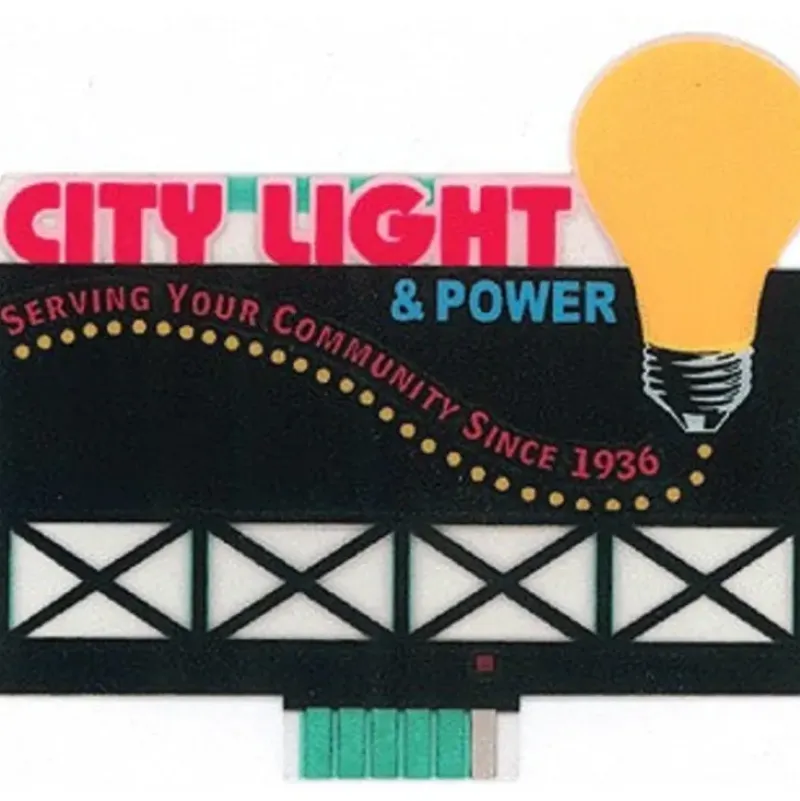 This is a Miller Engineering 9282 N Scale City Light & Power Animated Neon Billboard.