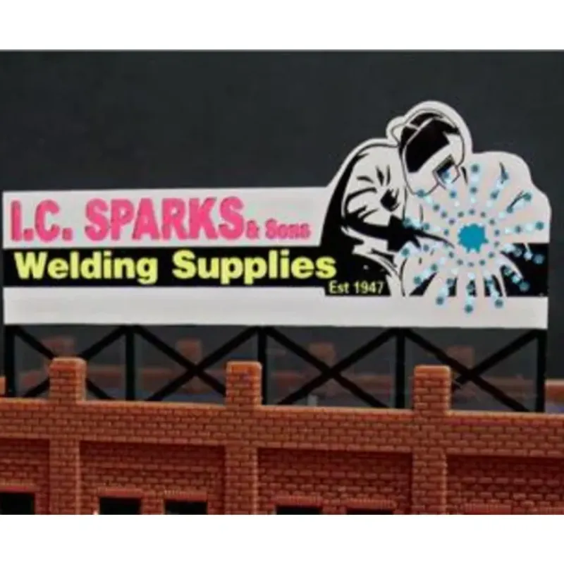 This is a Miller Engineering 9382 N Scale I.C. Sparks Animated Neon Billboard.
