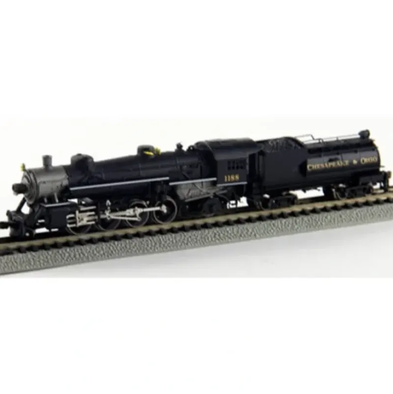 This is Model Power 875951 N Chesapeake & Ohio Mikado 2-8-2 w/ Tender #1188 (DCC & Sound). Beautifully Packaged in a Jewelry Style Plastic Chest! Die-Cast Metal Boiler, Cylinders, & Frame, Knuckle Coupler Equipped. New Tender Pick-ups. New Pilot Truck Pick-up. New Improved Driver Wiper Pick-ups. Traction-Tire Equipped for Extra Pulling Power. New Notched Driver Axle. New Golden White LED Lighting. Precision Brass Fly-Wheel and Worm Gear. Superior Painting and Authentic Schemes. Separately Applied Details. Road Name Specific Details (Trailing Truck/Tender).