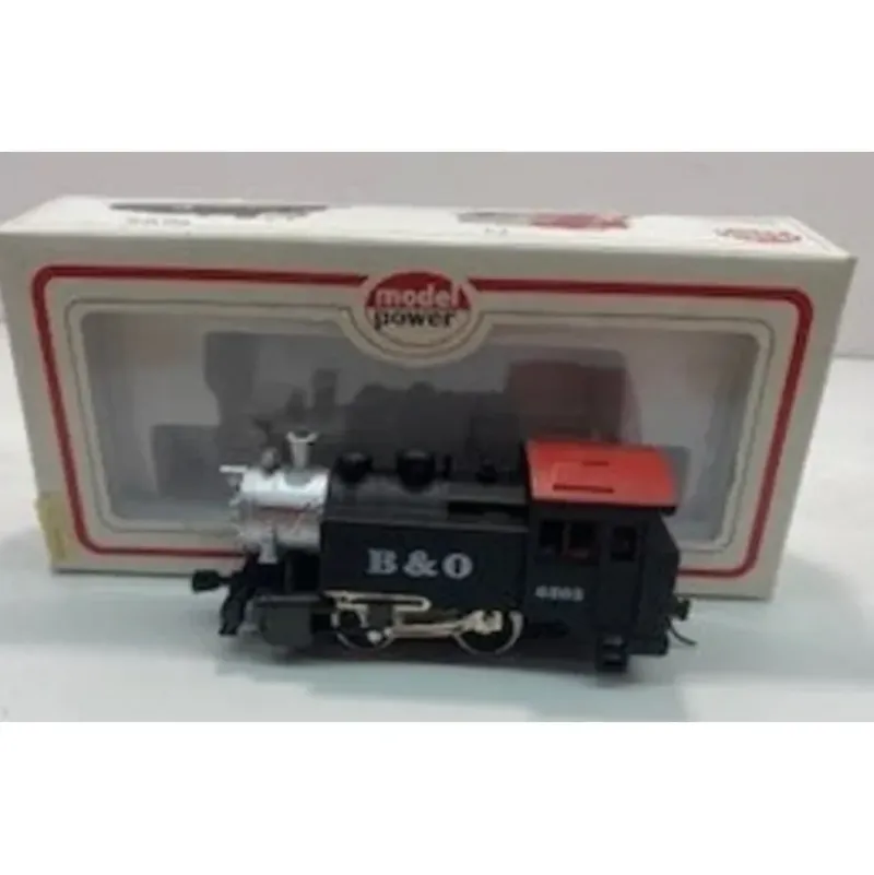 Model Power 96505 HO Baltimore & Ohio 0-4-0 Tank Steam Locomotive (Powered). Its key features are: Metal Chassis Front & Rear Directional Lighting.