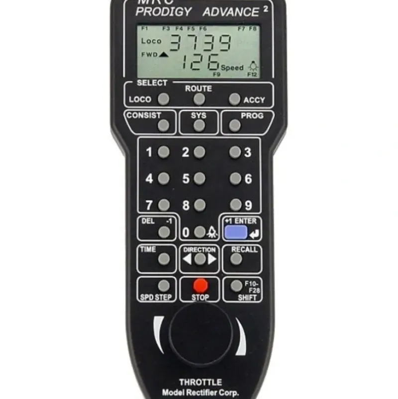 This is an MRC 0001415 All Scales Prodigy Advance Squared Walkaround. Expand your Prodigy DCC layout with a 0001415 Handheld Controller. For use with Prodigy Elite, Prodigy Advanced 2, Prodigy Advance, Prodigy Express2 or Prodigy Express. The 0001415 Handheld features LCD display screen with quick readout. It performs the following functions: Auto 2 or 4 digits addressing, Advanced & Universal Consisting, Turnout Routing, Program CVs on the main, 28 Accessory Functions, Accessory Button, System Settings, Fast Clock with Adjustable Ratios, Program all CVs, Decoder Readback, 25 Recall and Stack Features. Simultaneously Run Throttles. Program all CVs with ease. 14-28/128 speed steps. Program on the main or the program track without affecting active locos. INCLUDES: (1) Handheld Controller and (1) Cable with RJ45 connectors. Quick-start instructions printed on the back. Detailed instructions may be downloaded from our website.