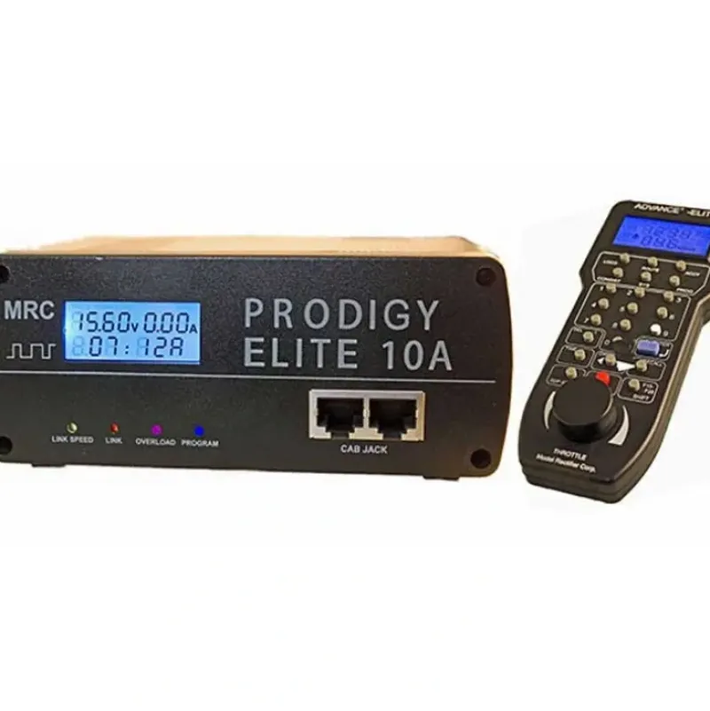 This is an MRC 1417 HO Scale Prodigy Pro Elite DCC Command Station 10 Amp. Eight-plus amps of controlled power, perfect for large club layouts or large outdoor G Scale garden railway displays or for the modeler who demands the best. Features backlit LCD, MRC’s Hypersonic Control Link (TM) for faster response from the throttle to the locomotive, external backlit LCD fast clock connects to main console and 28 NMRA functions. Operates up to 32 handhelds at one time. Cooling fan provides added protection.