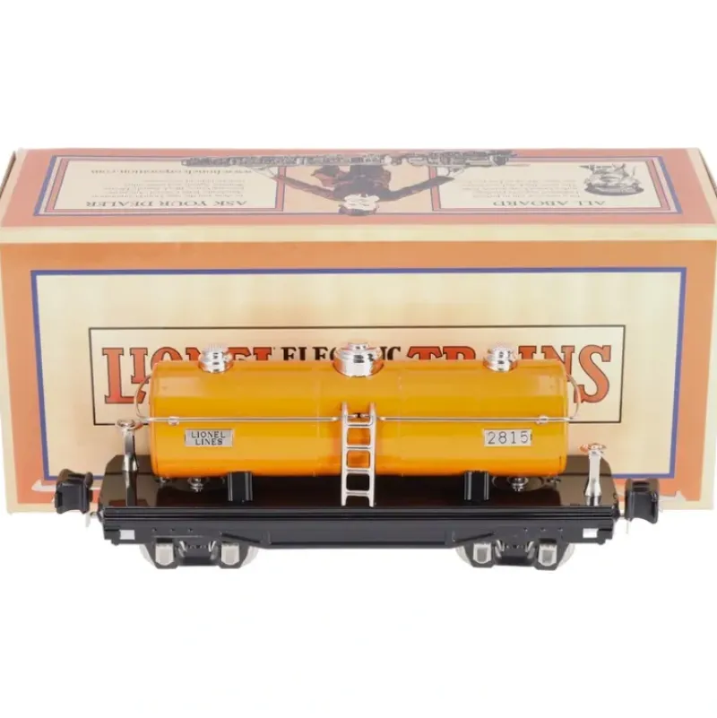 This is a MTH 11-70007 O Gauge Orange Tinplate Tank Car #2815.