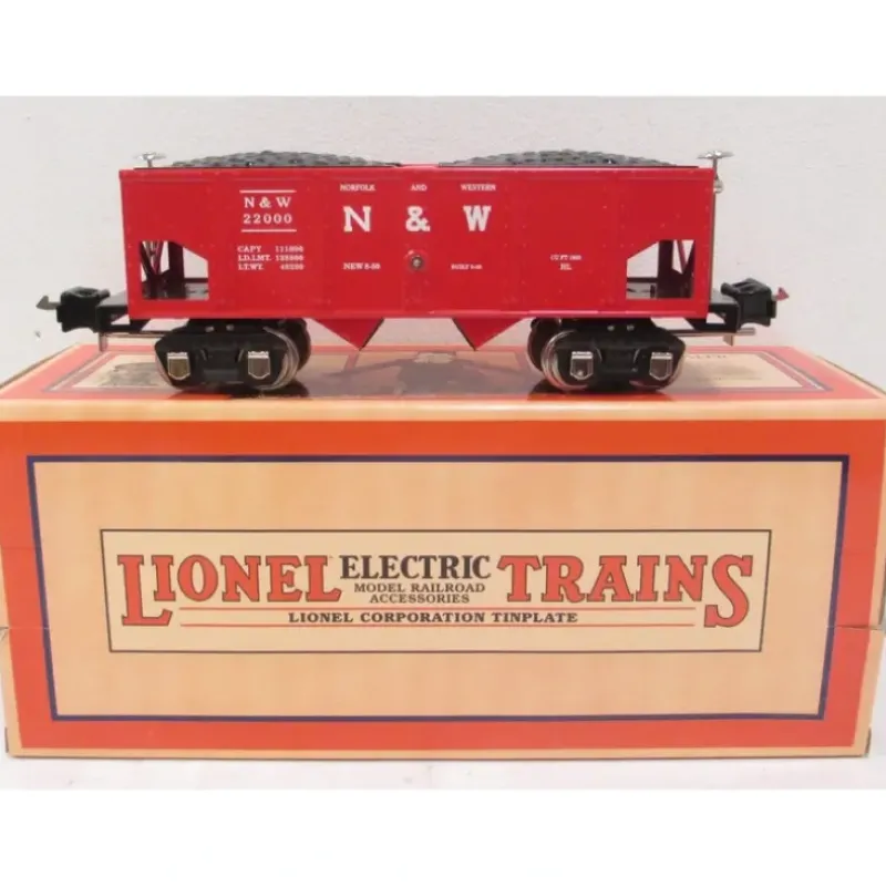 This is a Lionel 11-70013 Norfolk & Western Red/Nickel No. 2816 Hopper Car. Along with its top-of-the-line standard gauge freight cars, Lionel upgraded its high-end O gauge freight line in 1926: In designing this marvelous new series of Lionel ‘O’ Gauge Freight Cars, our aim has been to express the individuality of every type of commercial freight car used on all railroads. Many new features never before carried out to such perfection are apparent in these cars. Catalog numbers, initially in the 800 series when the cars were equipped with latch couplers, were changed to 2800 series when new automatic box couplers were added in 1938.