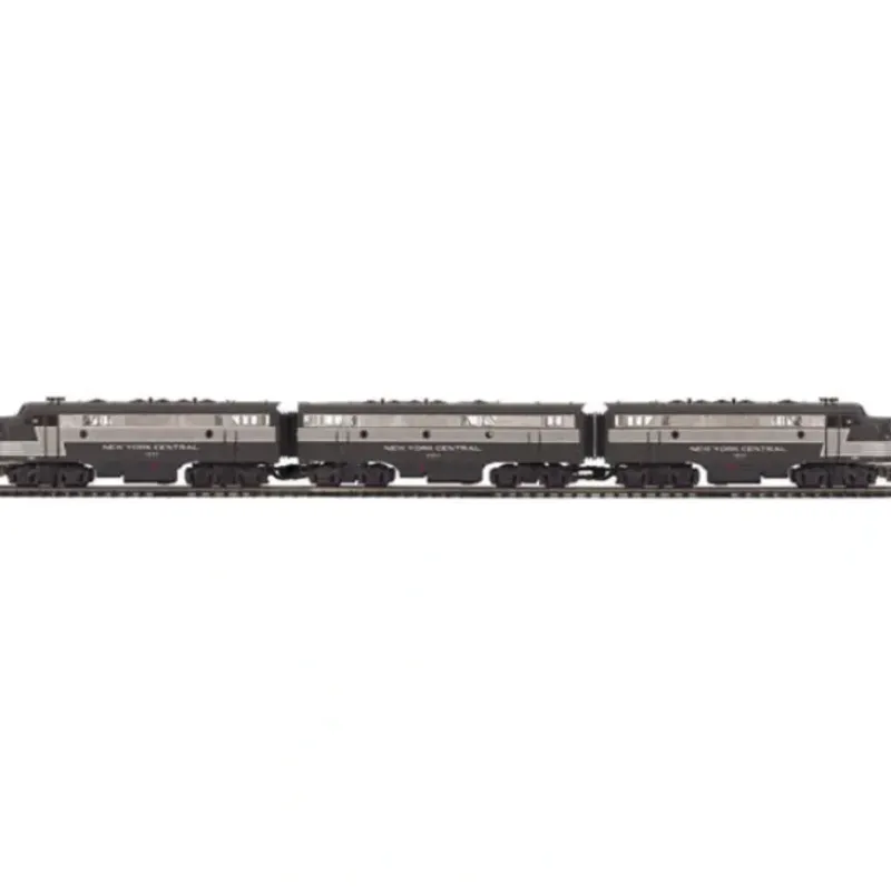 This is MTH 20-20265-1 F-7 ABA w/PS 3.0 NYC HI. F-7 ABA diesel set with Proto-Sound 3.0 (hi-rail wheels), New York Central. Cab numbers: A units – 1871 & 1873; B unit – 2471. The F7 was the zenith of the covered wagon, or carbody-style diesel. With 3,84