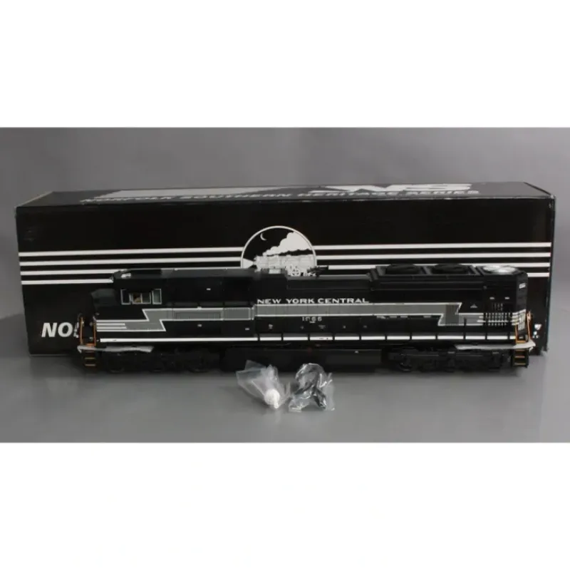 This is MTH 20-20274-1 SD70ACe Loco NYC Hi Rail. SD70ACe diesel engine with Proto-Sound 3.0 (hi-rail wheels), New York Central (NS Heritage). Cab number: 1066. The SD70ACe is Electro-Motive Division’s hope for the future. While designed to meet the Environmental Protection Agency’s Tier-2 emissions requirements that took effect on January 1, 2005, this replacement for the SD70MAC also seems to have a higher purpose: to recapture the lead in North American locomotive sales that EMD lost to General Electric in 1987.