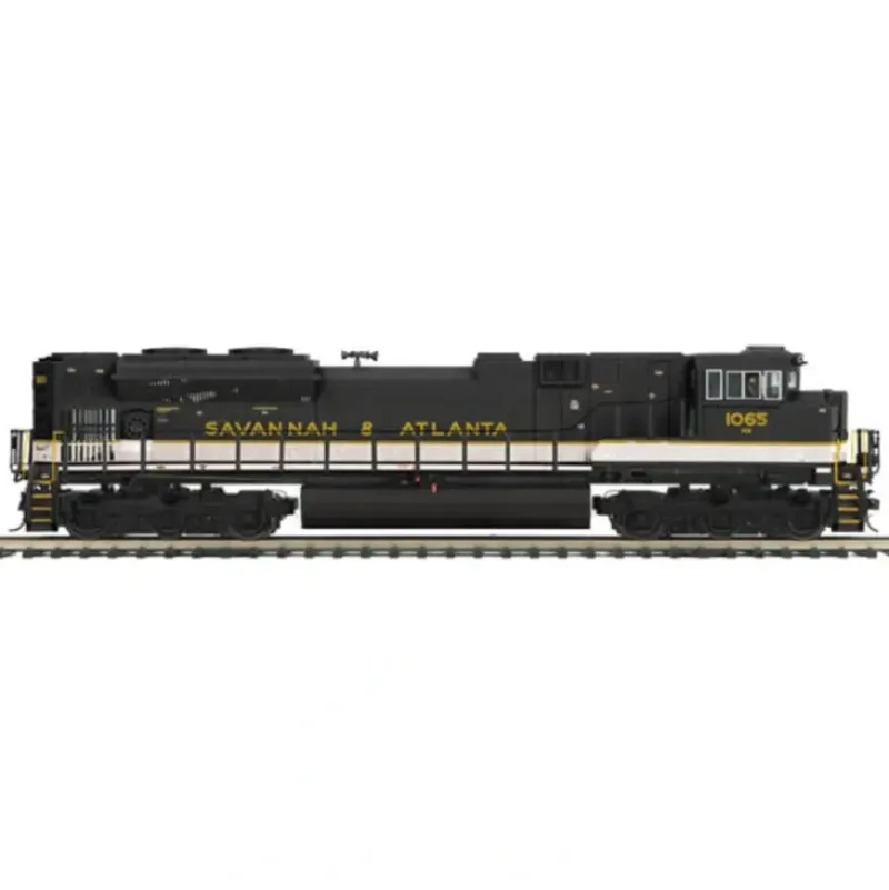 This is MTH 20-20275-3 O Hi-Rail SD70ACe Dummy, NS/S&A Heritage. SD70ACe diesel engine (non-powered), Savannah & Atlanta (NS Heritage).